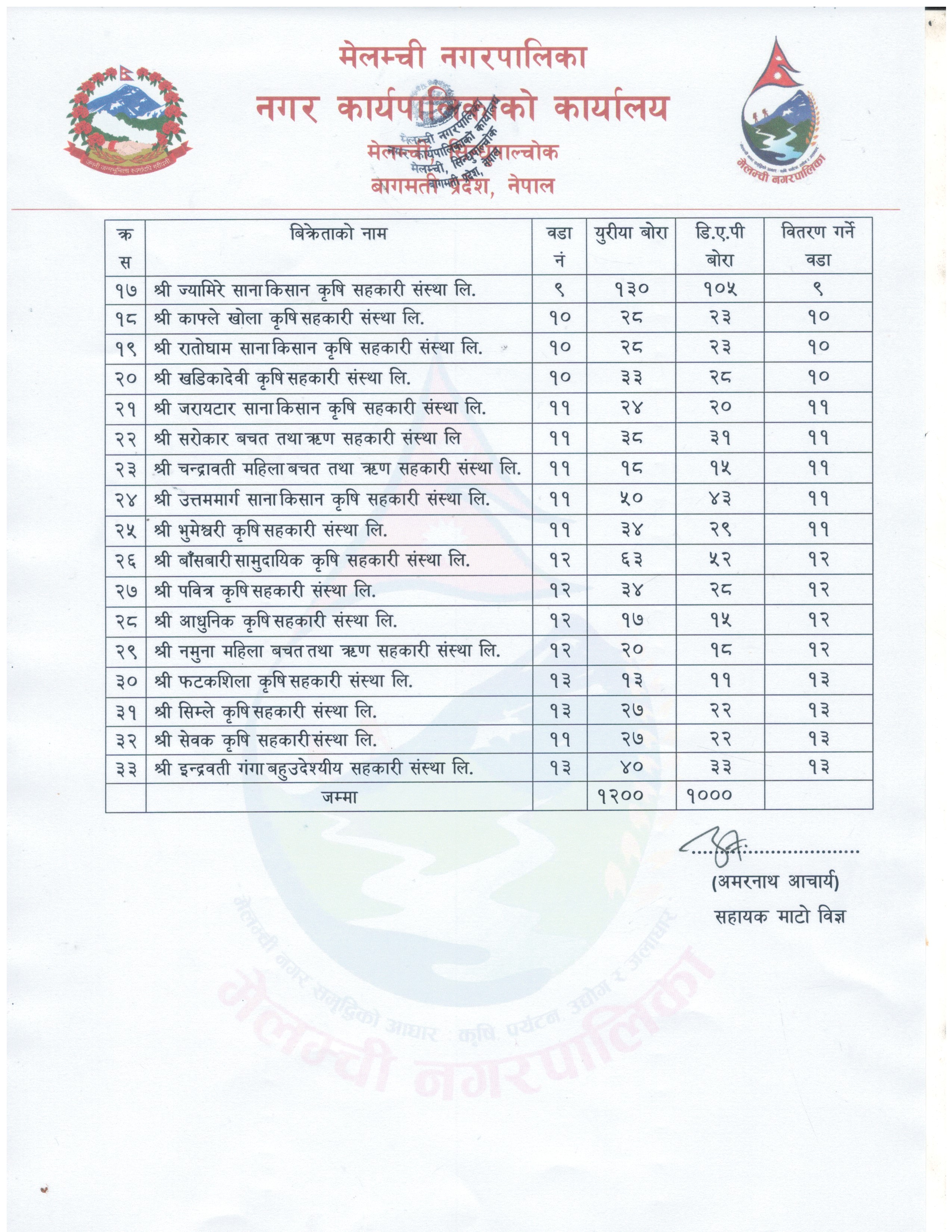 कृषि सामाग्रीबाट प्राप्त अनुदानको मलको कोटा तोकिएको सूचना।