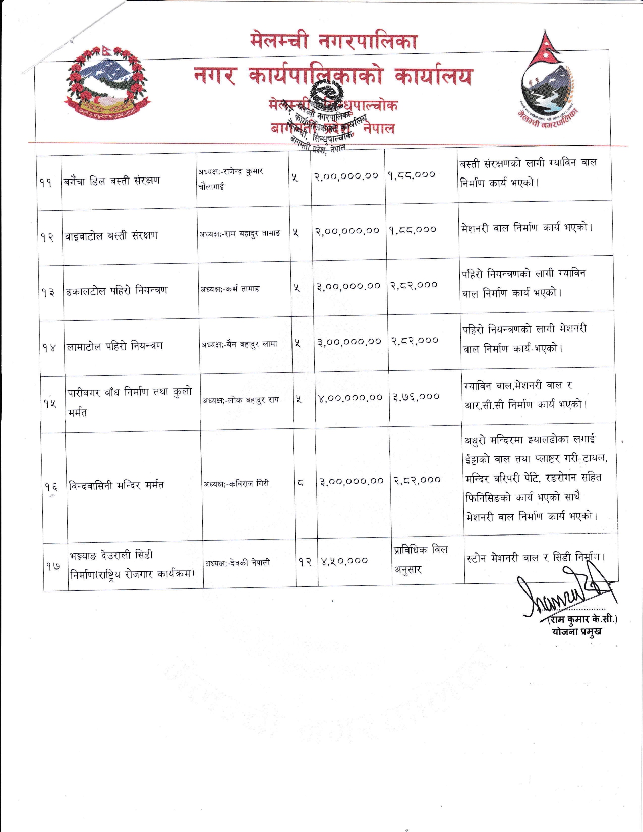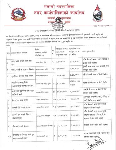 योजनाहरूको अन्तिम भुक्तानी सम्बन्धी सार्वजनिक सुचना
