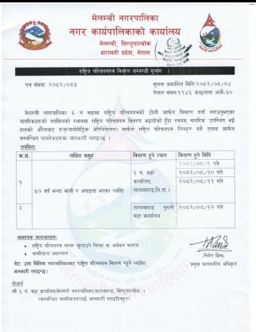 वडा नं ६ को राष्ट्रिय परिचयपत्र वितरण सम्बन्धी सूचना