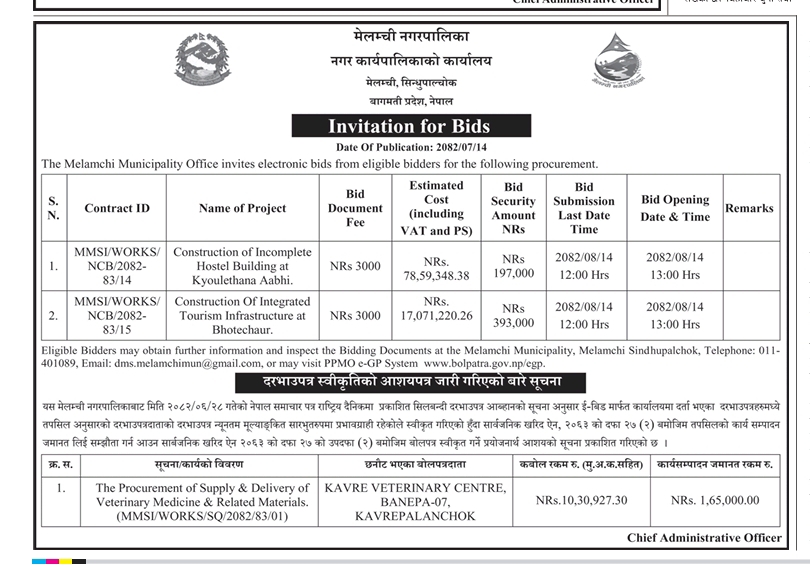 Invitation for bids of works and notice of issuance of letter of intent for bids acceptance