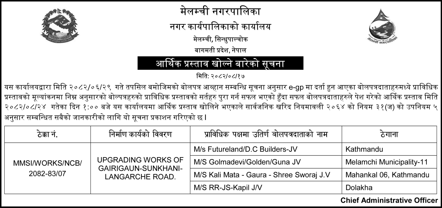 आर्थिक प्रस्ताव खोल्ने बारेको सूचना