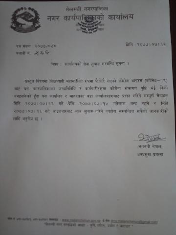 कार्यालयको सेवा सुचारु सम्बन्धी सूचना