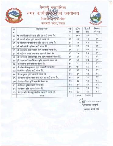 कृषि सामाग्रीबाट प्राप्त अनुदानको मलको कोटा तोकिएको सूचना।