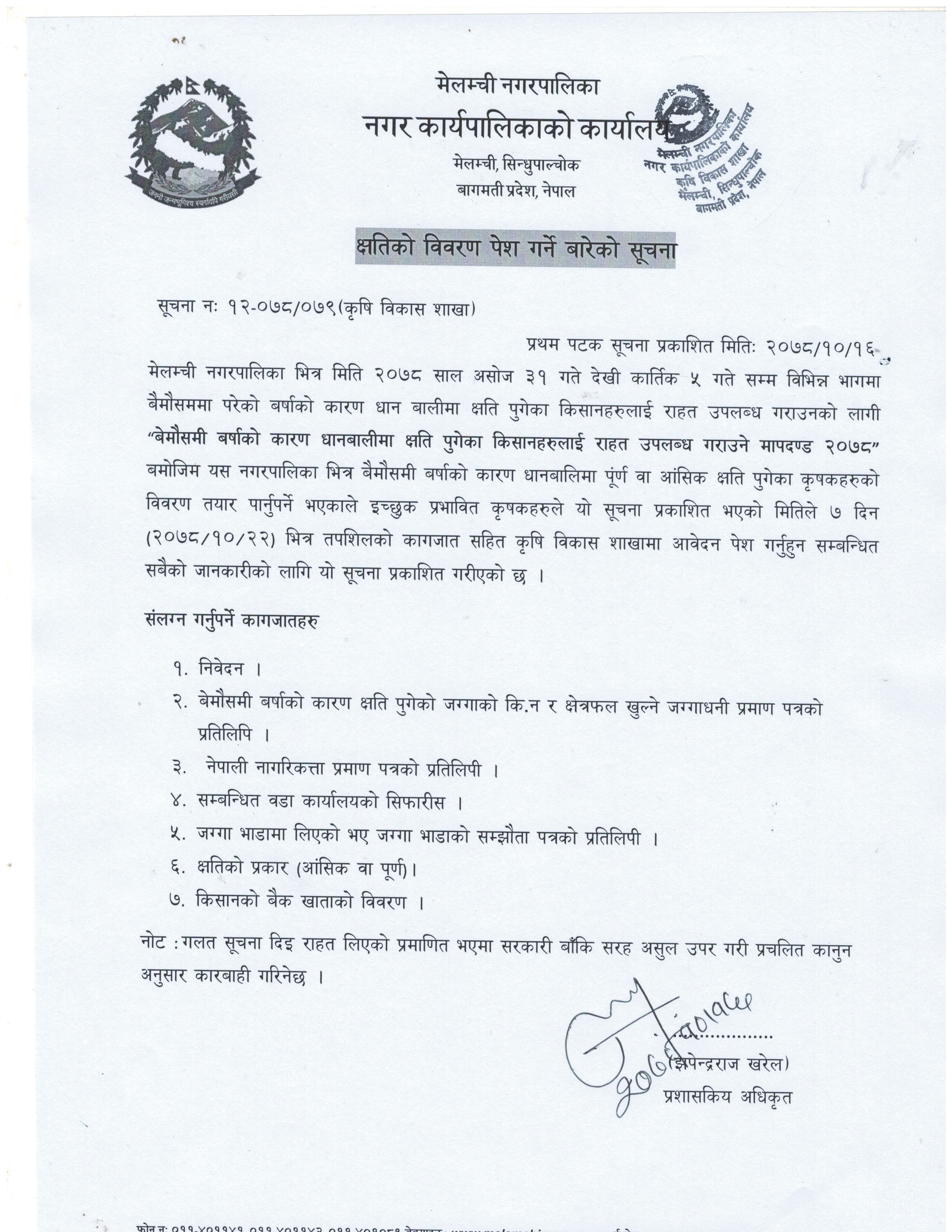 क्षतिको विवरण पेश गर्ने बारेको सूचना