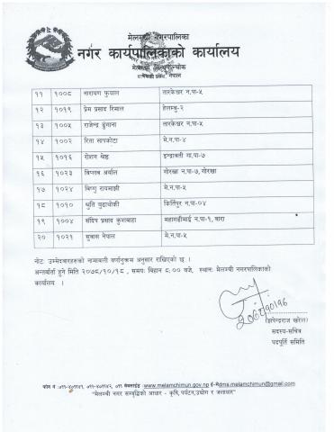 लिखित परीक्षाकाे नतिजा प्रकाशन तथा अन्तरर्वार्ताकाे मिति ताेकिएकाे सम्बन्धमा