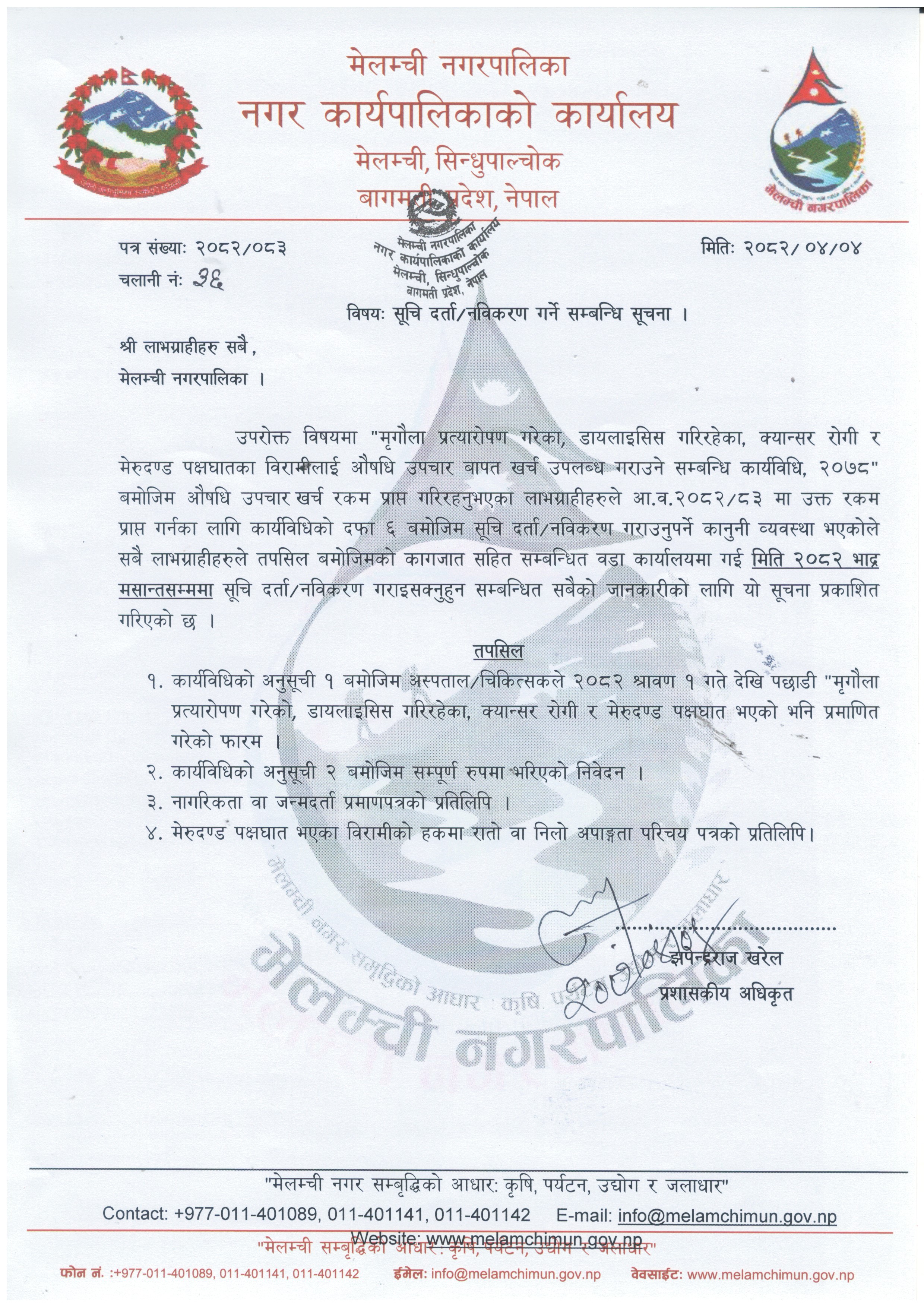 सूचि दर्ता / नविकरण गर्ने सम्बन्धी सूचना