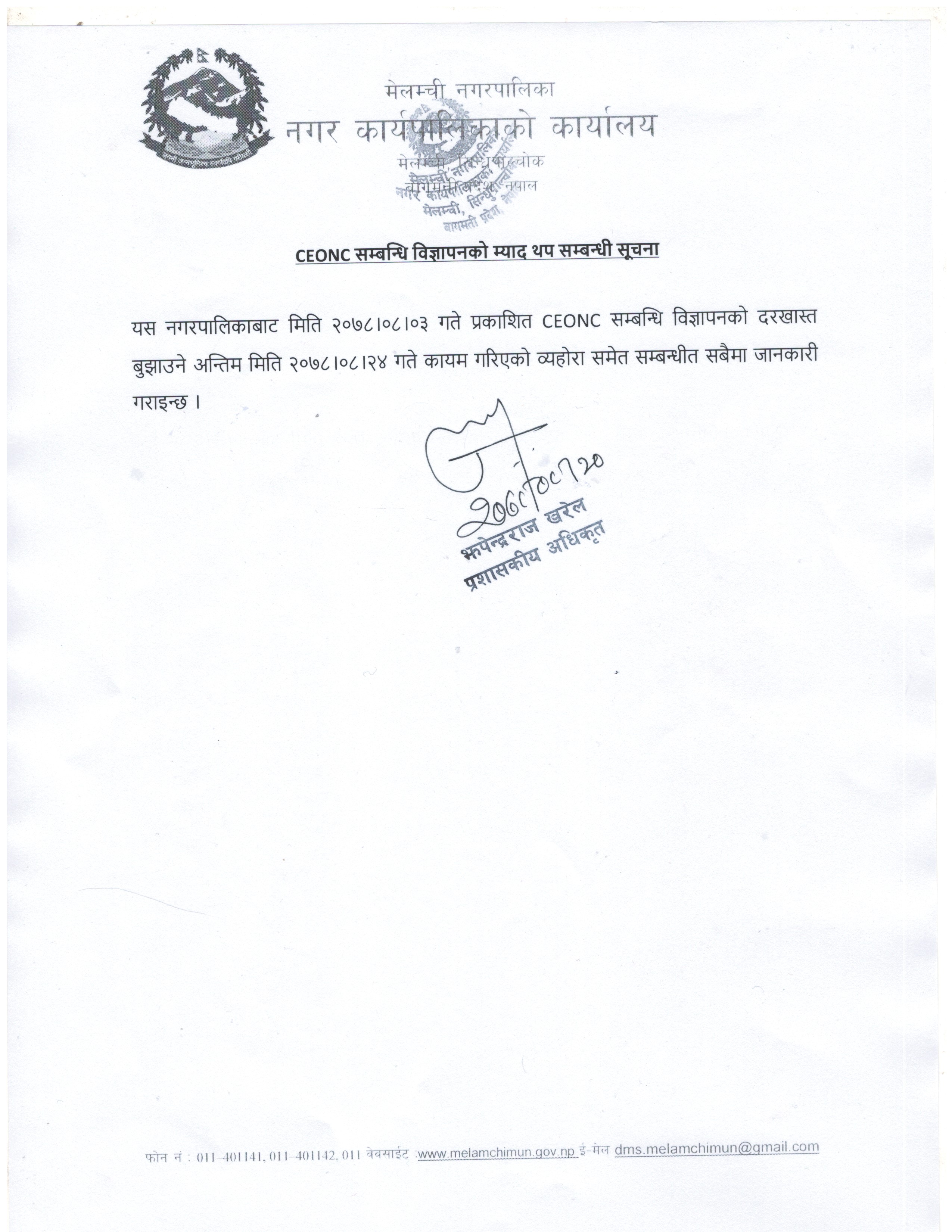 CEONC सम्बन्धी विज्ञापनको म्याद थप सम्बन्धी सूचना